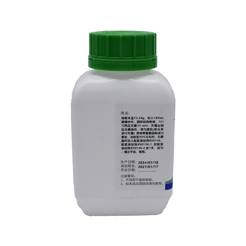 2、培養(yǎng)基應(yīng)置于避光、干燥處保存,使用后應(yīng)立即旋緊瓶蓋,以免吸潮結(jié)塊。