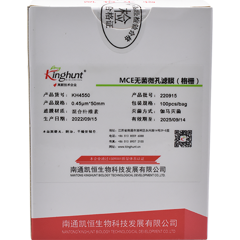 | KH4550 | MCE無(wú)菌微孔濾膜(格柵) | 0.45μm*50mm 100片/盒 | 無(wú)菌過(guò)濾,空氣檢測(cè),顆粒檢測(cè)等 |